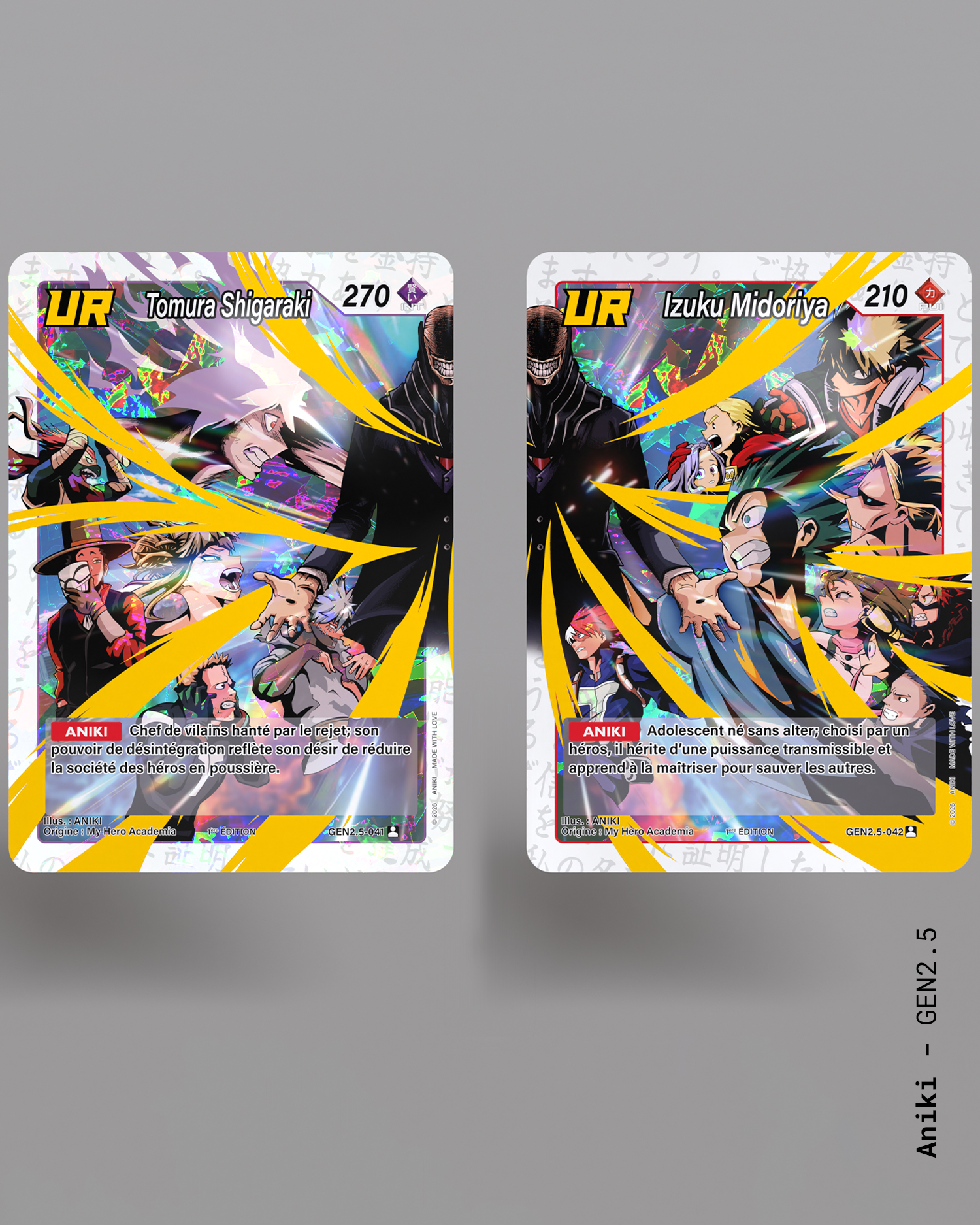 Dans chaque booster, vous retrouverez 5 cartes à collectionner, toutes dessinées par Aniki lui-même, inspirées directement de l’univers du manga japonais !